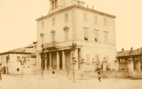 La villa, progettata e costruita nel 1848 dal rinomato Arch. Giovan Battista Carducci, mostra un tipico impianto neoclassico: portico rialzato a sei colonne – due livelli – torrino.